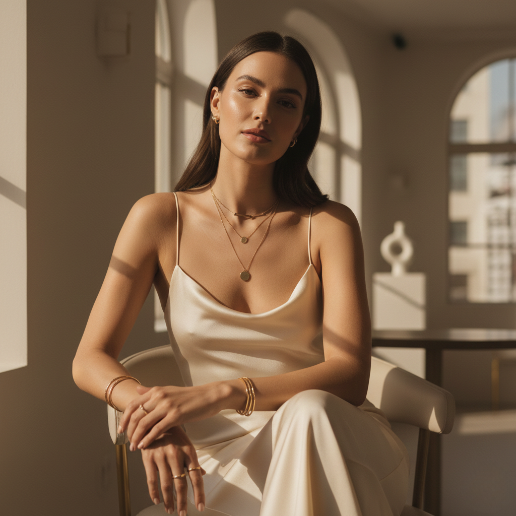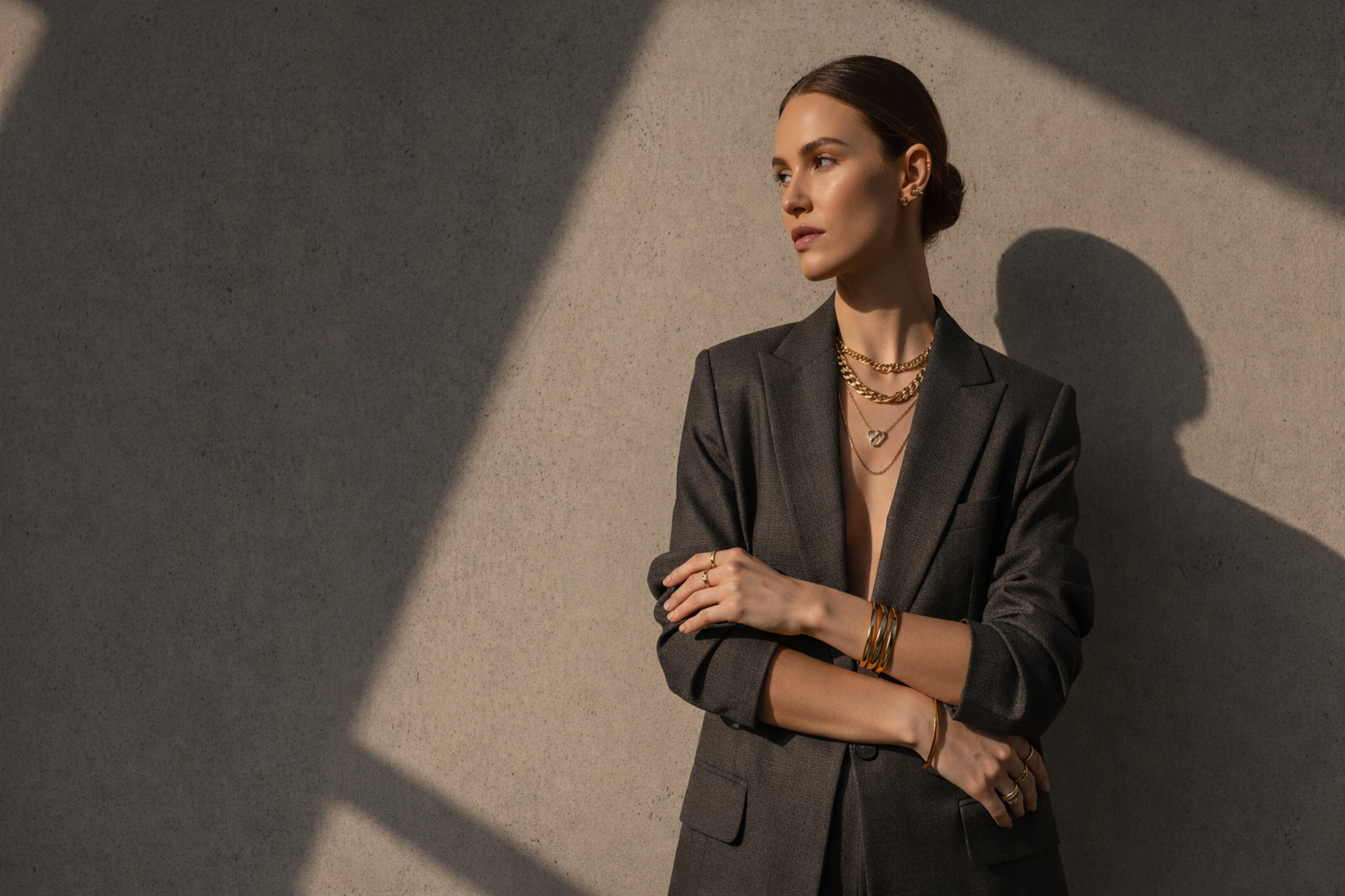 Esmielle is designed for the woman who moves with intention. Our pieces bridge the gap between bold architectural structure and effortless daily wear. Every curve is considered every shine is permanent.